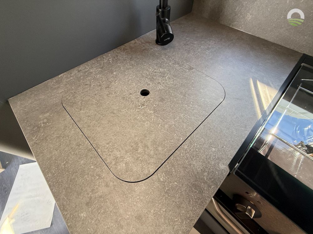 - Inset sink with flush-fitting cover